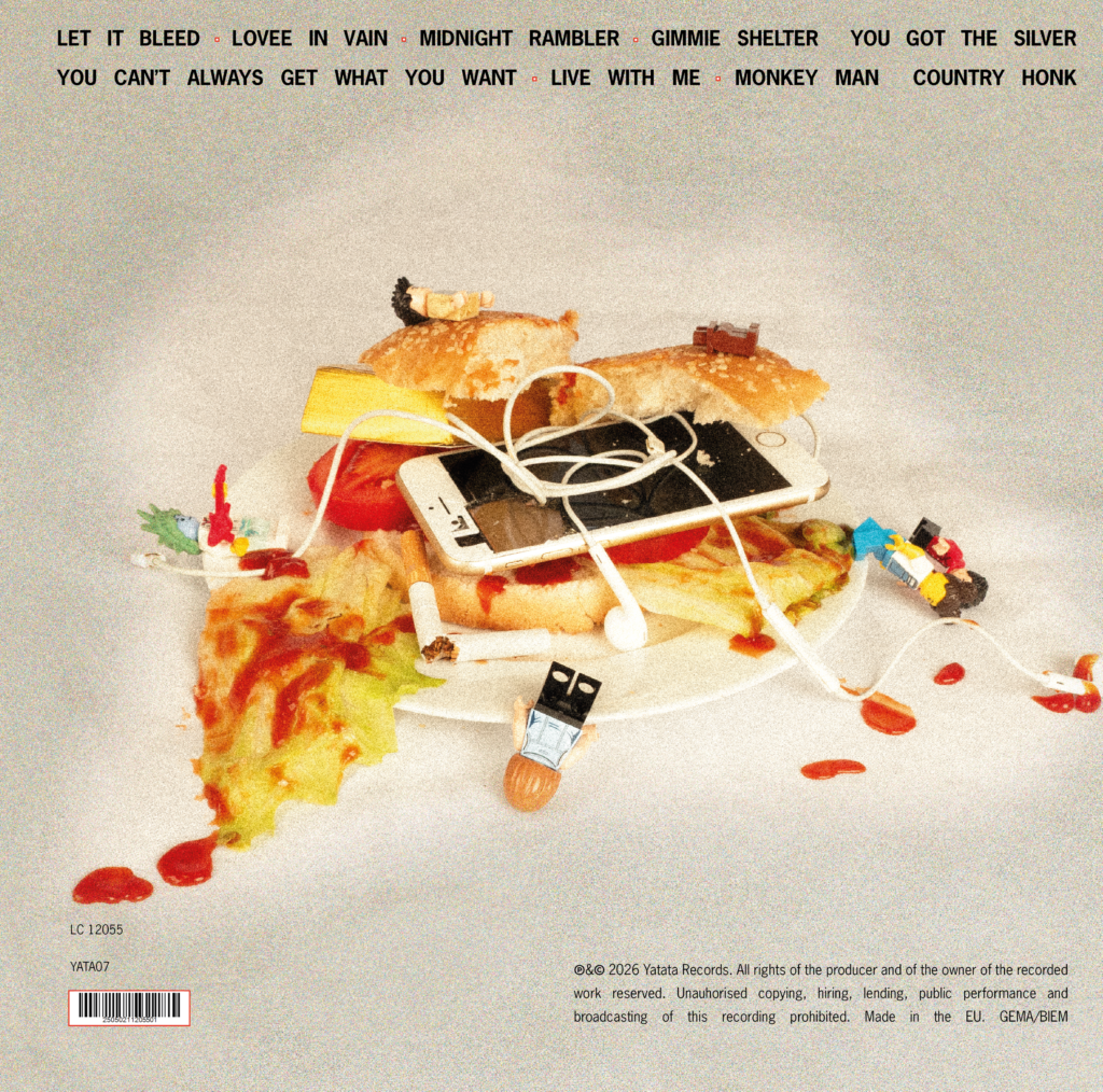 Darauf basierend entwickelten wir Ideen und entschieden uns für ein modernes Stapelkonzept, welches bewusst eine Anlehnung an das Originalcovers sein sollte. Auch wie das Original sollte unsere Neuintapretation Gesellschaftskritik transportieren: Wir entwarfen den Burger mit Objekten der Überflussgesellschaft. Wie auch das Originalcover sollte der Burger auf dessen Rückseite zerstört dargestellt werden. Die Umsetzung erfolgte fotografisch im Studio