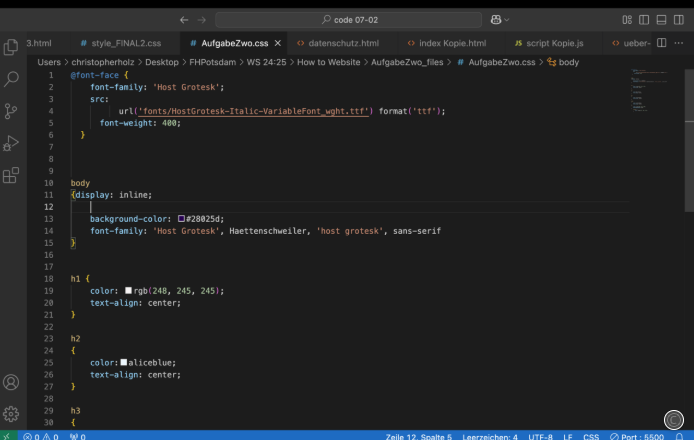 Dann lernten wir, wie man anhand des CSS-Codes die Website stylen kann.