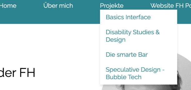 Am Ende des Kurses bauten wir mit dem erlernten Wissen unsere eigene Webseite. Ich entschied mich für eine mintfarbene Seite mit einer durchgehenden Animation auf der Startseite. Ich baute eine Taskleiste ein, mit einem Drop-Down Menü für Verschiedene Projekte, die ich auf meiner Homepage präsentieren wollte. Wo wir gerade dabei sind: Ich muss sie mal wieder updaten:)